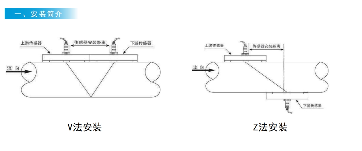 Z方式安装传感器一般Z方式是在100mm以上的管道上使用,它有时被称为直接法。