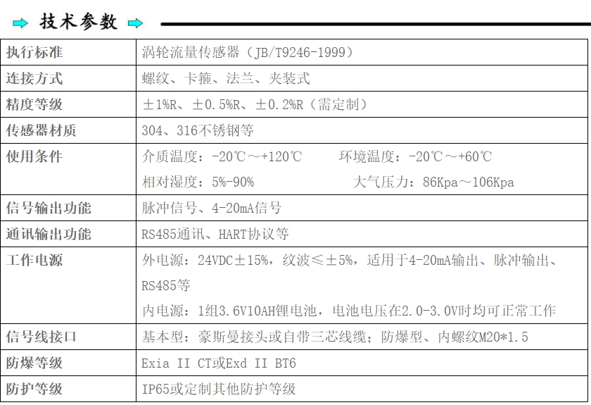 良好的线性:涡轮流量计在一定流量范围内具有良好的线性特性,使其在多种工况下均能提供稳定的流量测量。