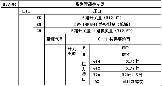 KSP-G4系列智能控制器是集压力、温度、液位的测量、显示与控制为一体的智能开关。该产品为全电子结构,前端采用进口高精度传感器,输出信号由高精度、低温漂的放大器放大处理,送入高精度的A/D转换器,转换成微处理器适用的数字信号,通过数字信号对控制系统压力进行测控及开关控制。该系列产品广泛用于自来水、液压、水电、石油、化工、机械等作业场合。