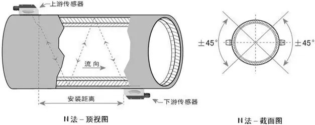 N安装方式就是通过延伸超声波的传输距离进行提升精度。用N安装方式时,超声波束在管道里反射两次穿过流体三次(叫做三声程),所以一般适于测量小管径管道。