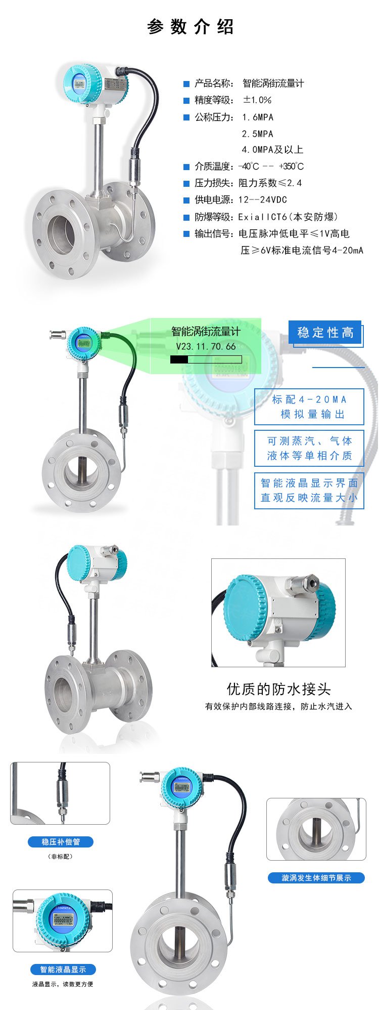 用于工业管道介质流体的流量测量,如气体、液体、蒸汽等多种介质。